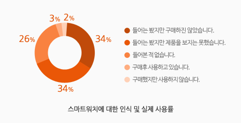 상기 그래프는 2014년 CCS Insight가 4,000명을 대상으로 실시한 조사 결과이다. 그래프에서 살펴볼 수 있는 것처럼 조사 대상 중 겨우 5%만이 웨어러블의 대표 주자인 스마트워치를 보유하고 있을 뿐이다. 또한, 34%의 사람들이 미디어를 통해서 스마트워치를 접해봤으나 그 실체는 보지 못했다고 응답했다. 이는 비단 스마트워치 만의 문제가 아니다.