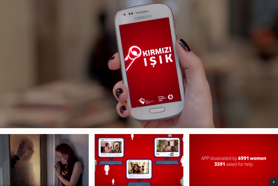 보다폰(Vodafone)은 Red Light 앱을 가지고 "Between Us"라는 캠페인을 진행했는데 평소엔 손전등 앱으로 사용되던 이 앱은 여성들이 가정 폭력의 위험에 노출될 경우 스마트 폰을 흔들기만 하면 사용자가 사전에 등록된 3명의 지인에게 구조요청 메세지를 자동으로 보내도록 되어있다. 무엇보다 본 캠페인이 그랑프리를 차지할 수 있었던 것은 철저하게 여성들만이 이 사실을 공유하도록 만들었다는데 있다. 캠페인 이름처럼 ‘우리들만 아는 비밀’은 어떻게 유지될 수 있었을까.