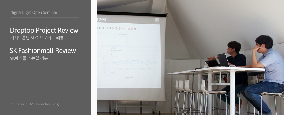 In this month, digitalDigm has reviewed SEO project of Café Droptop and SK Fashion Mall renewal.