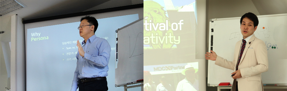 4월 1일, UI디자인과 GUI디자인, 서비스디자인 전문 기업인 PXD의 이재용 대표를 초빙하여 UX와 관련하여 혁신의 원리와 퍼소나[Persona]를 통한 명확한 타겟분석, 그를 통해 고객 만족을 이끌어내는 과정에 대한 강의를 진행했다.