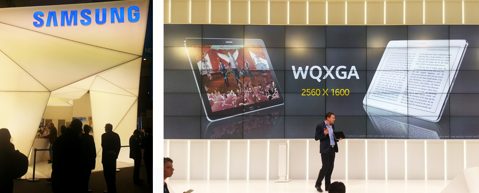 MWC2014는 9개관에서 진행되며 전체 크기로는 삼성동 코엑스의 30배 정도의 공간이라고 한다. 그 중에서도 가장 메이저 기업들이 위치한 Hall3에 삼성, LG, SKT가 단독 부스를 마련하고 구글, 인텔, IBM 등 세계적인 기업들과 나란히 자리하고 있어 모바일 분야에서의 대한민국의 위상을 실감케 하였다. 특히, 확 트인 공간에 가장 큰 부스를 마련한 삼성에는 전시 기간 동안 많은 사람들로 붐볐고 미팅룸 역시 90% 가까이 사전 예약이 되었음에도 불구하고 미팅을 원하는 사람들로 항상 북적였다.
